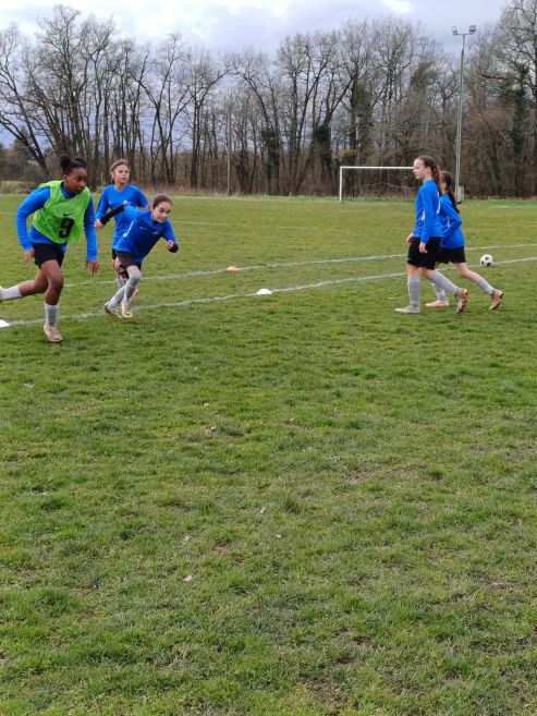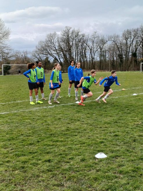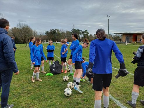 L’évènement s’est déroulé le lundi 24 février 2025 sur les infrastructures du club de l’AS Puymoyen que nous remercions pour la qualité de leur accueil. Un groupe de 12 joueuses a pu vivre une journée composée d’une séance de perfectionnement, d’un repas, d’un moment de cohésion et d’une rencontre de préparation contre les U12G de l’AS Puymoyen. L’objectif principal : passer d’un groupe à une équipe pour ces joueuses qui porteront pour la première fois le maillot du district de football de la Charente et leur permettre d’avoir des repères dans le jeu et la vie de groupe.