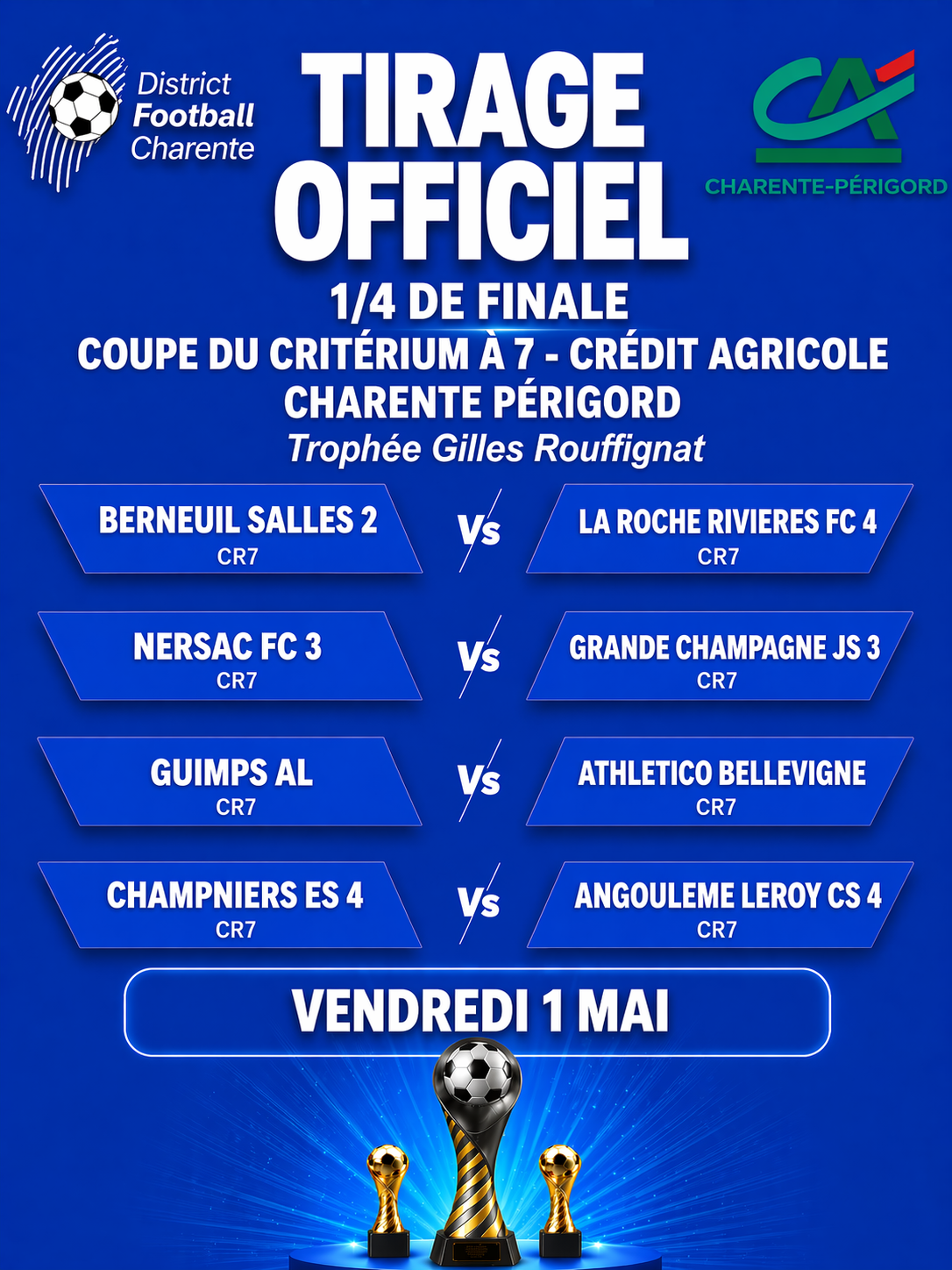 PLACE AUX 1/4 DE FINALE DES COUPES DÉPARTEMENTALES