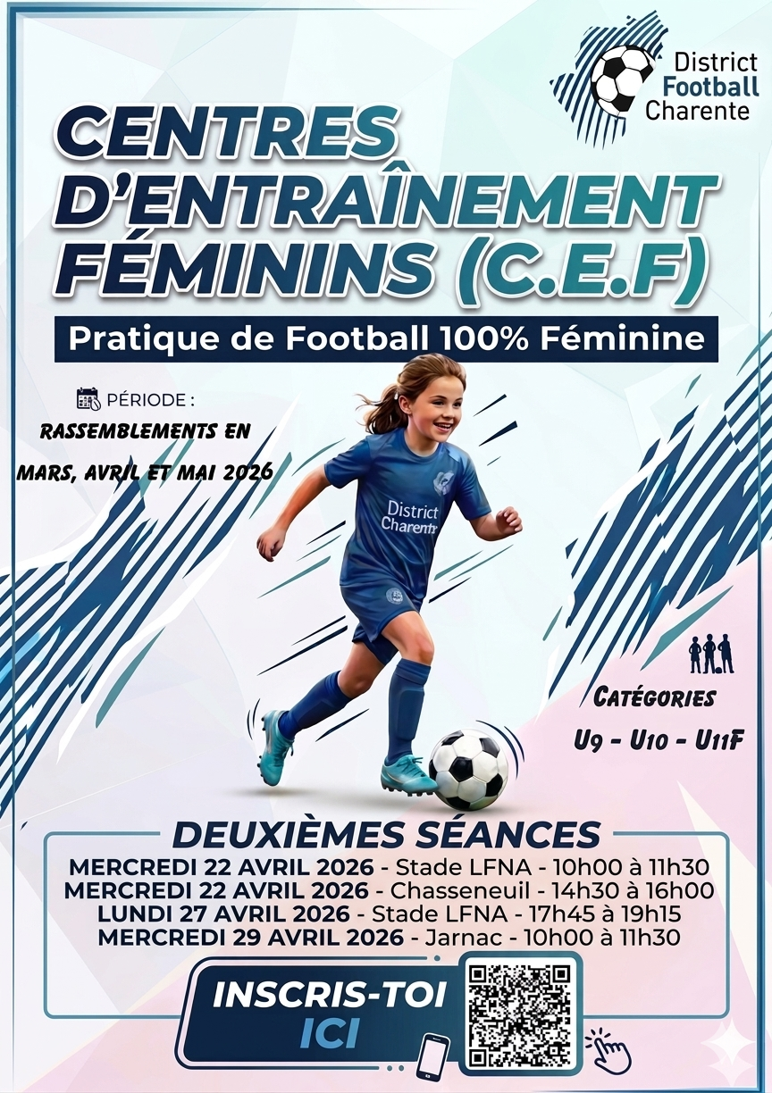 Dans le cadre de son plan de développement de la pratique 100% féminine, le district de la Charente poursuit son développement avec une nouvelle action : les Centres d’Entrainement Féminins (C.E.F) ; Déployé durant les mois de mars, avril et mai, le dispositif sera accessible aux licenciées ou non licenciées U9, U10 et U11F.