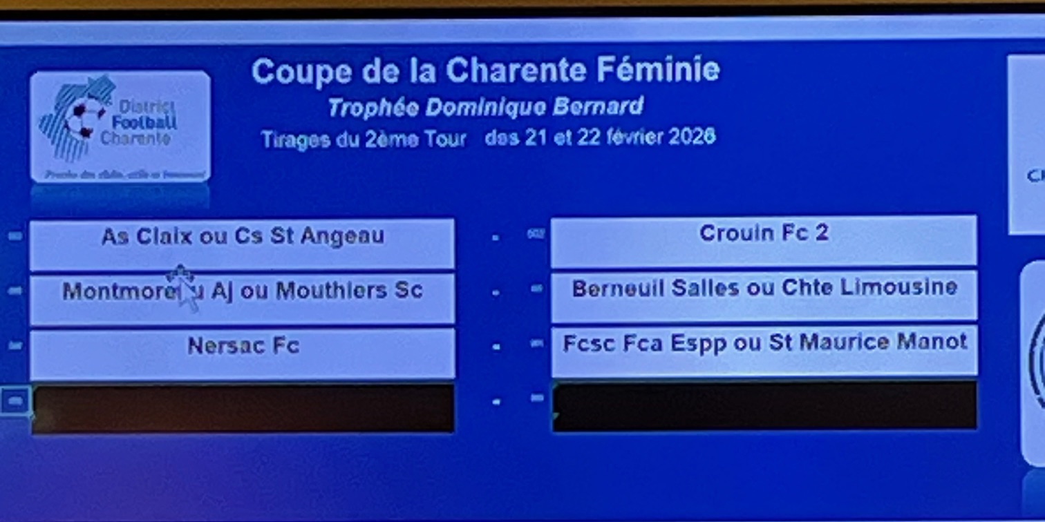 TIRAGE DES 1/8 DE FINALES DES COUPES DÉPARTEMENTALES ET DU 2EME TOUR DE LA COUPE CHARENTE FEMININES